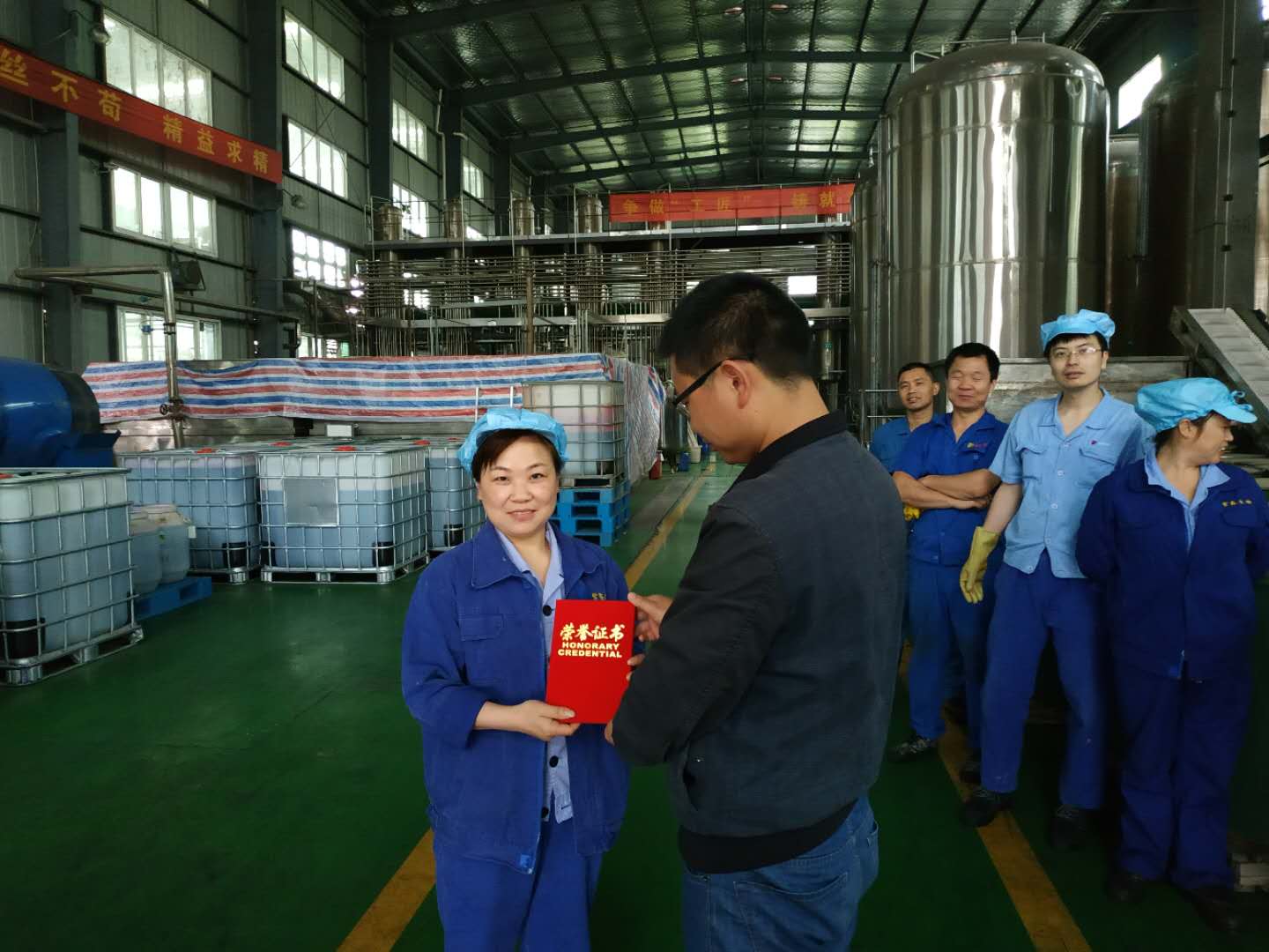 在“五一”國(guó)際勞動(dòng)節(jié)前夕,紫鑫生物公司評(píng)選出2018年度勞動(dòng)模范,經(jīng)過(guò)三輪的評(píng)選,第一輪由各部門推薦勞模初選名單;第二輪通過(guò)微信不計(jì)名投票;第三輪由總經(jīng)辦投票審定勞模最終名單,決定授予生產(chǎn)運(yùn)營(yíng)中心余翠華同志“2018年度勞動(dòng)模范”榮譽(yù)稱號(hào)。